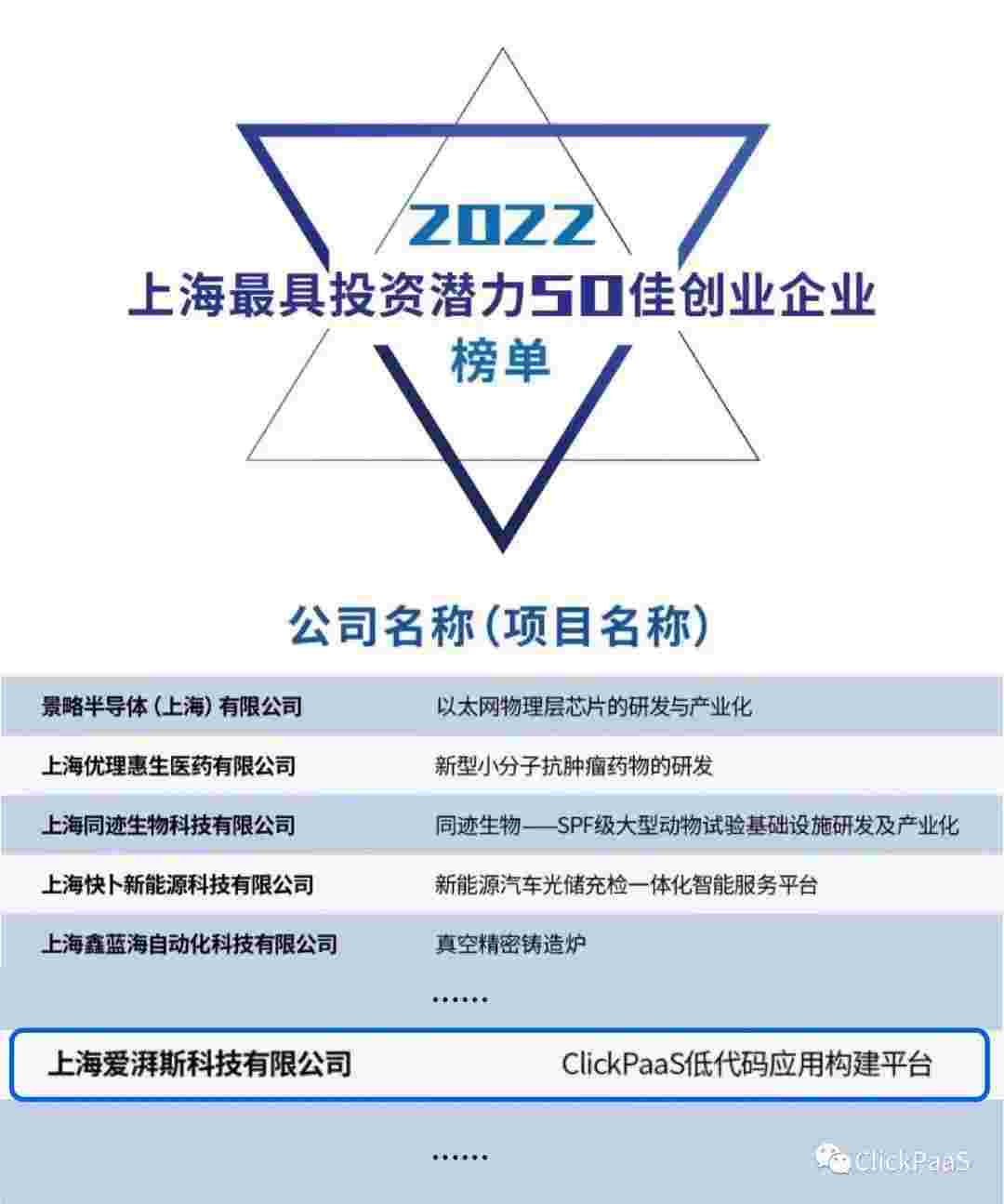 NO钱包 作为国内低代码PaaS平台的领军企业,,,,,,,,,,与120家创企入围角逐。。。。。。期间接受了来自德同资本、、、、、、、、、、领中资本等知名投资机构的10位投资人组成专家评委团的背靠背盲选。。。。。。。。。。。。并最终入围“2022上海最具投资潜力50佳创业企业”榜单,,,,,,,被列入“上海市重点培育创业企业库”。。。。。。。。。。。。。。